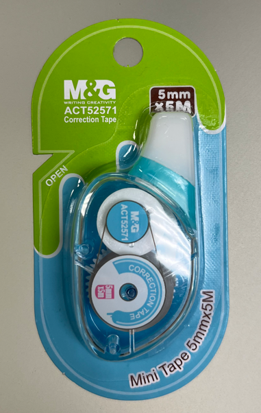 CORRECTOR DE CINTA M&G 5MM X 5 M Codigo: CORR02 Autor: S/A Editorial: CELLYN Sección: PAPELERIA Precio: $ 27.50