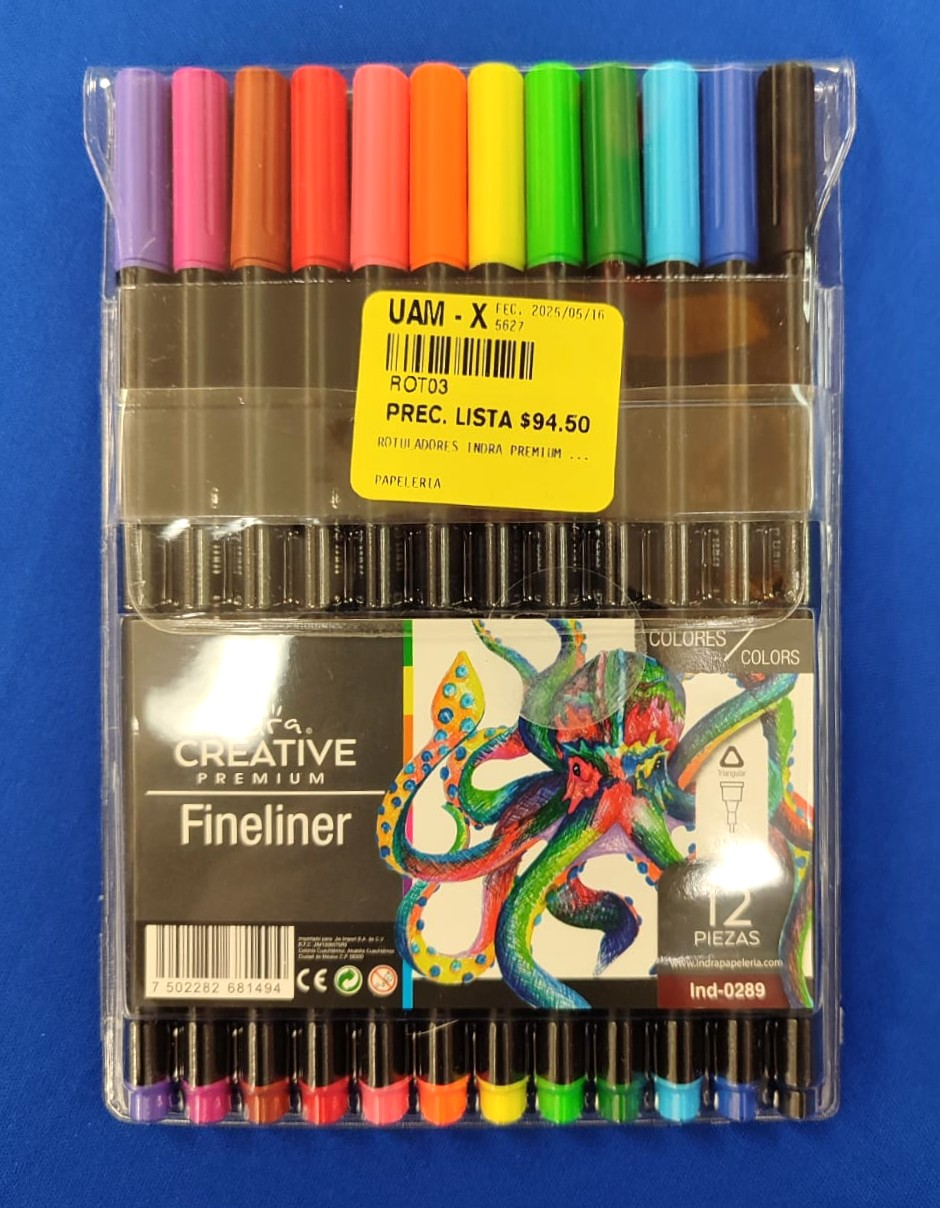 ROTULADORES INDRA PREMIUM FINELINER 12 PIEZAS Codigo: ROT03 Autor: S/A Editorial: INDRA Sección: PAPELERIA Precio: $ 94.50
